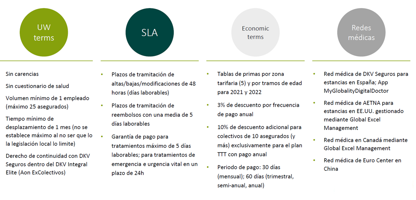 En Aon podemos gestionar las pólizas que comentas con unas estupendas condiciones. Te envío las características principales del Seguro de Salud de Expatriados que ofrecemos para este tipo de casos.